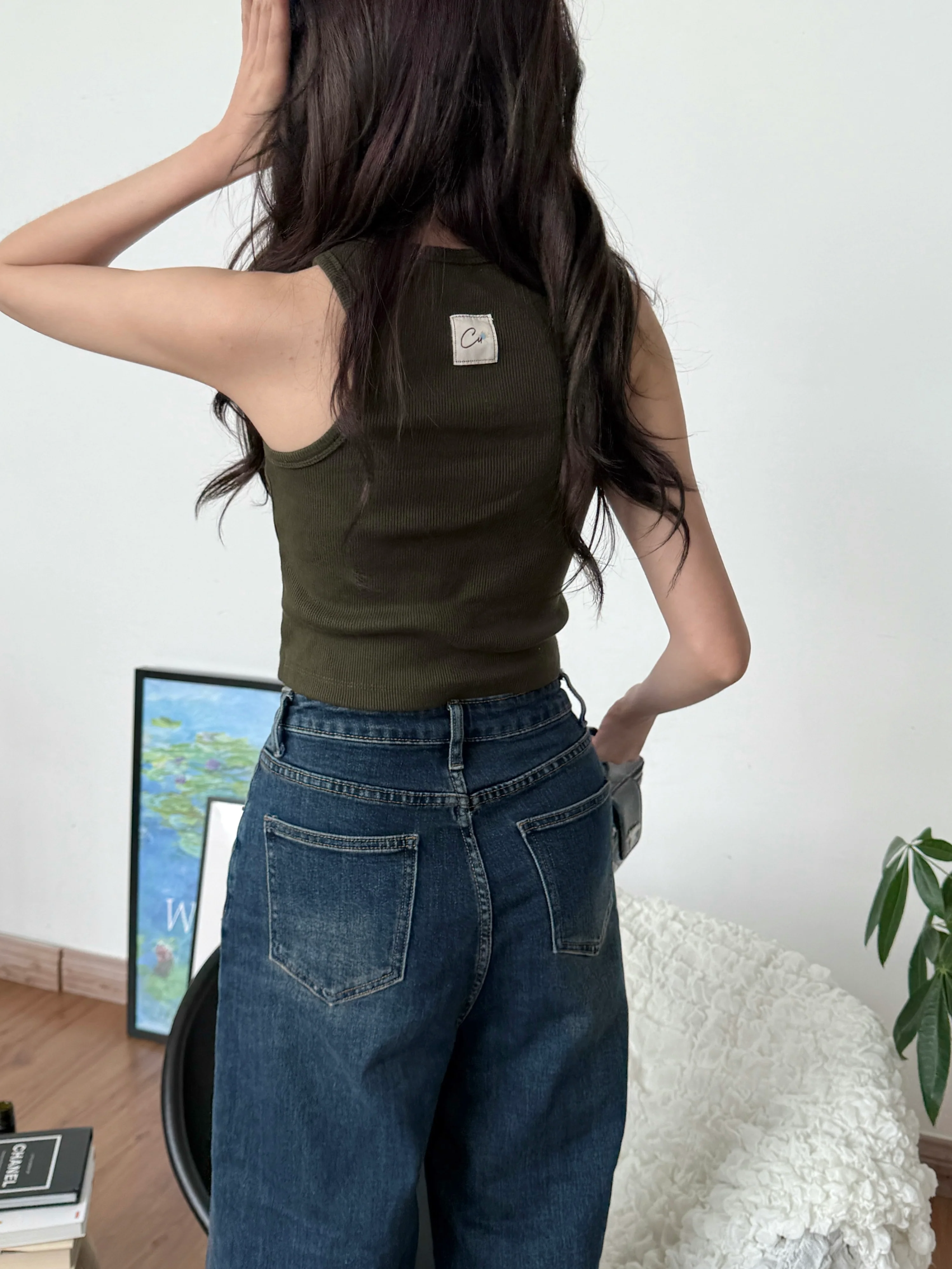 Cu Button Tank Top (Army Green)