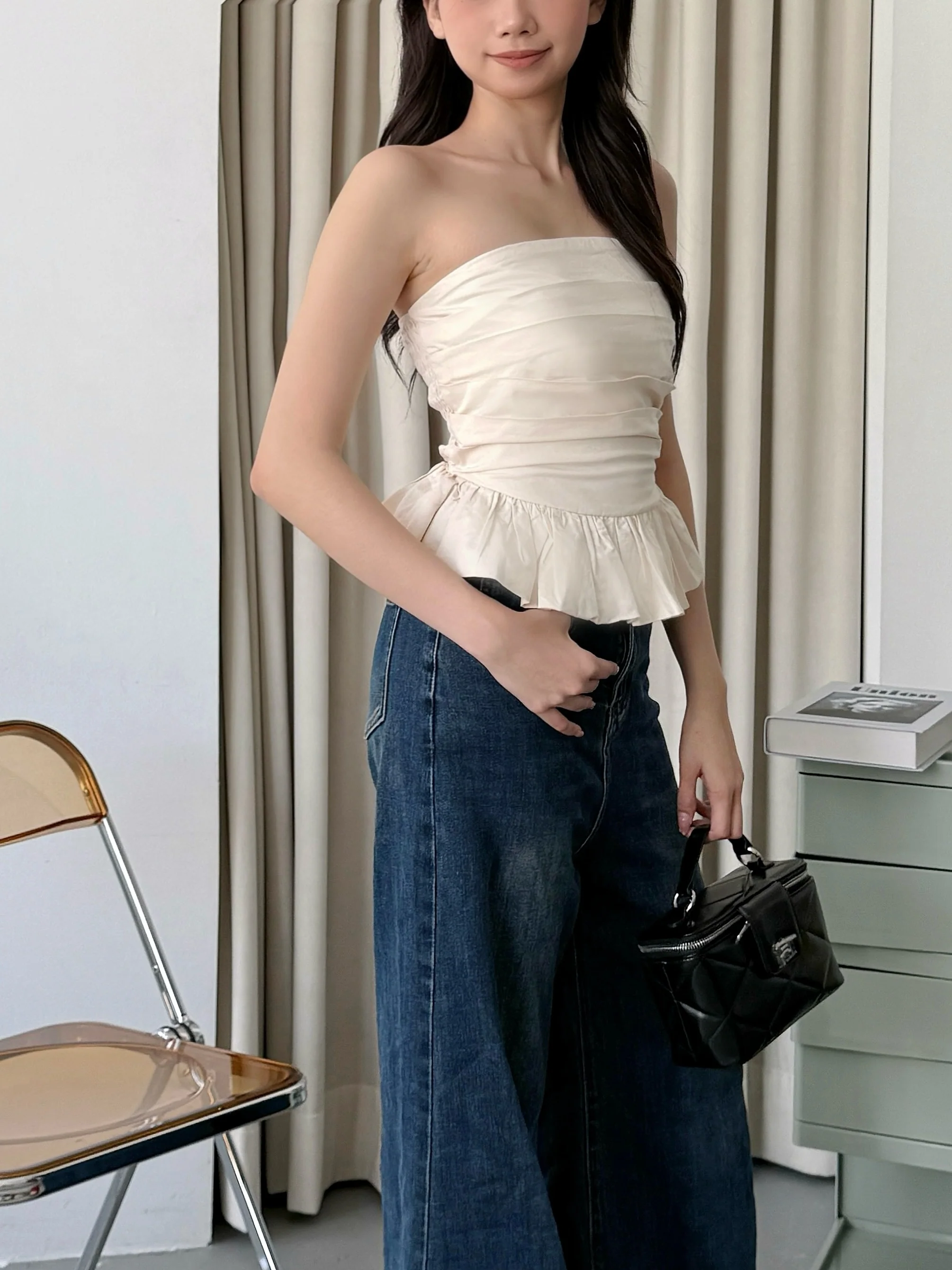 Cherie Ruffle Top (Beige)