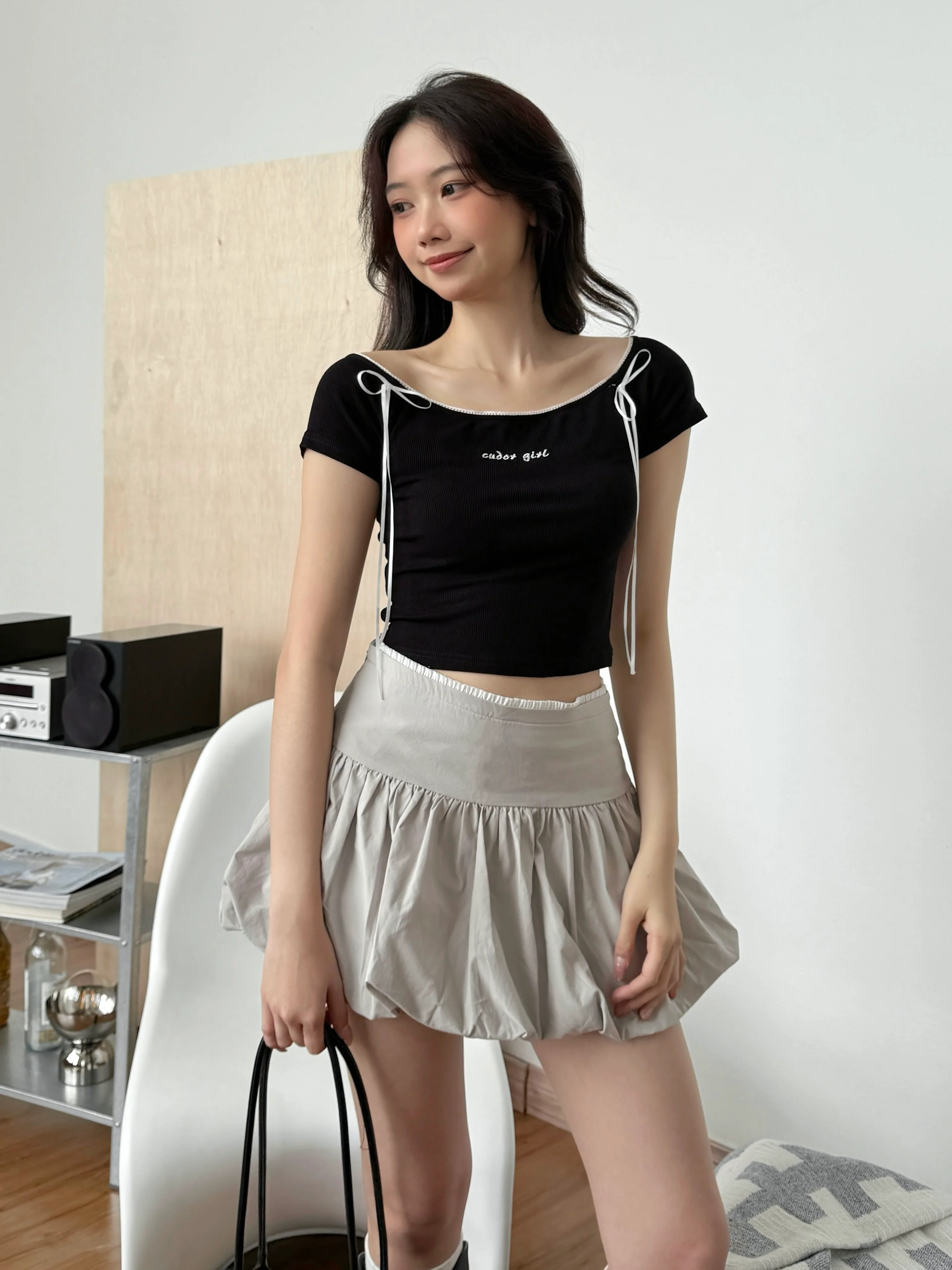 罗纹面料~ 整件上衣都是修身有弹性的哦